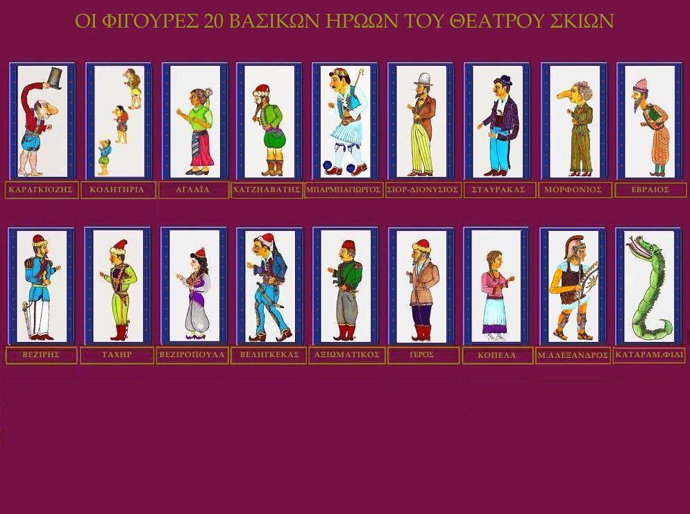 <<< Πατώντας κλικ στο όνομα κάποιου ήρωά μας, εμφανίζεται μεγαλύτερη φιγούρα ολόκληρη και ακόμη μεγαλύτερη σε κομμάτια. Στην συνέχεια μπορούμε να έχουμε την φιγούρα σε αρχείο PDF ή JPEG, πατώντας κλικ στην αντίστοιχη ένδειξη. Τυπώνουμε σε διάφανο χαρτί (ριζόχαρτο) όσο πιο χονδρό δέχεται ο εκτυπωτής μας. Βέβαια, για να φτιάξουμε φιγούρες λειτουργικές, χρειαζόμαστε χαρτί 200-220 γραμ. και εκτυπωτή κάπου θα βρούμε. Τυπώνουμε την ίδια φιγούρα δύο φορές (μία κατοπτρική) σε σχήμα Α4 για μικρές φιγούρες ή σε Α3 για μεγαλύτερες. Απλώνουμε κόλλα στην πίσω πλευρά της μιας εκτύπωσης και την κολλάμε στην πίσω πλευρά της άλλης ελέγχοντας μπροστά από ένα φως τις συμπτώσεις. Κόβουμε μετά με ψαλίδι τα κομμάτια και τα ενώνουμε με σερνικοθήλυκα υποδηματοποιών, αφού κάνουμε τρύπες, και η φιγούρα είναι έτοιμη. >>>