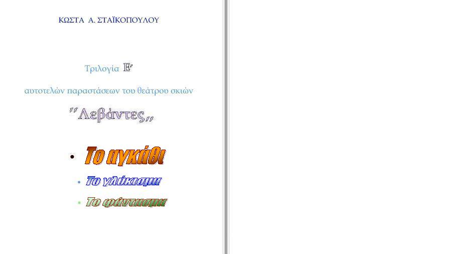 Ε π ι τ ρ έ π ε τ α ι η από σκηνής παρουσίαση του έργου από κάθε ενασχολούμενο με το θέατρο σκιών.
