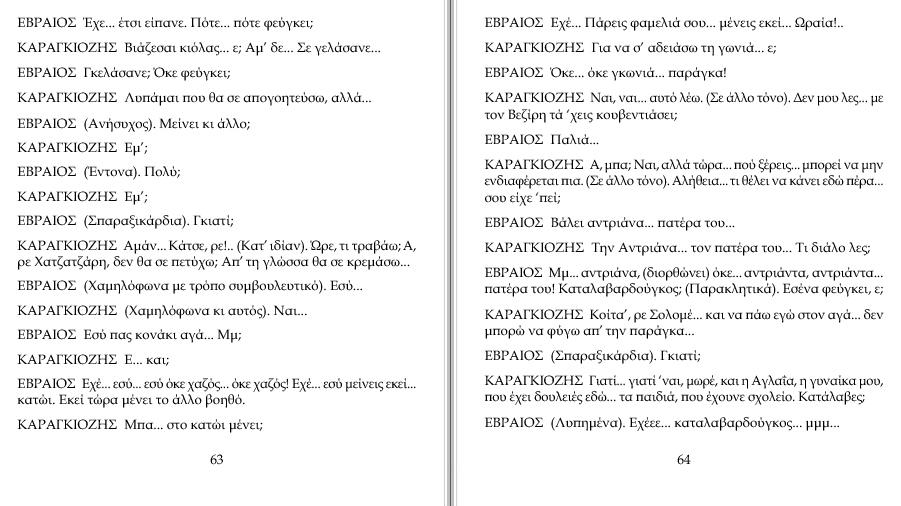 ΚΑΡΑΓΚΙΟΖΗΣ Για να σ' αδειάσω τη γωνιά... ε; ΕΒΡΑΙΟΣ Όκε... όκε γκωνιά... παράγκα!..
