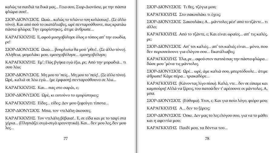 ΚΑΡΑΓΚΙΟΖΗΣ Α... δεν το ξέρεις; ΣΙΟΡ-ΔΙΟΝΥΣΙΟΣ Όσκε. Δεν μας το λες ελόγου σου, για να το μάθει και η αφεντία μου;
