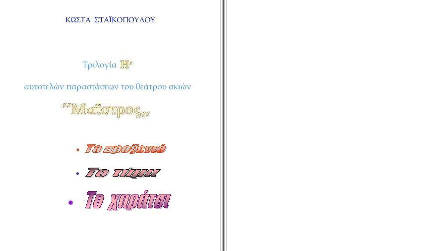 Ε π ι τ ρ έ π ε τ α ι   η από σκηνής παρουσίαση του έργου από κάθε ενασχολούμενο με το θέατρο σκιών.