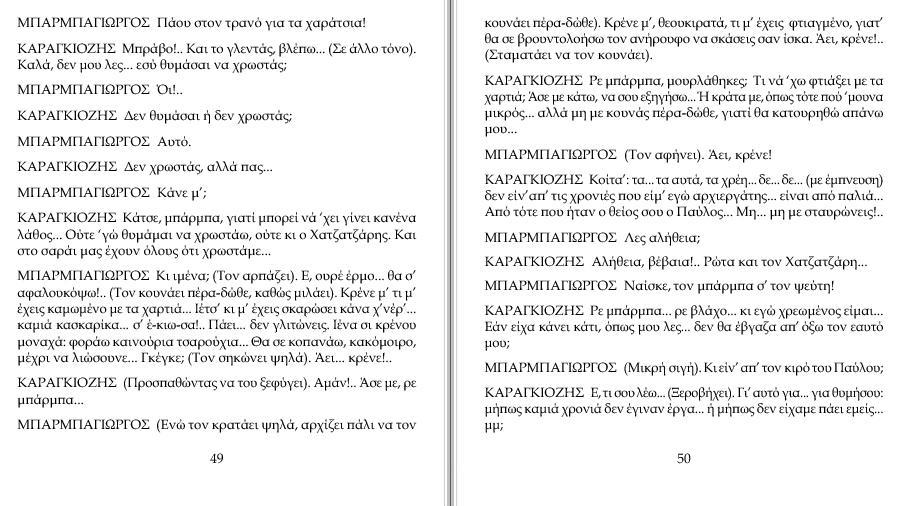 ΜΠΑΡΜΠΑΓΙΩΡΓΟΣ Πάου στον τρανό για τα χαράτσια! ΚΑΡΑΓΚΙΟΖΗΣ Μπράβο!.. Και το γλεντάς, βλέπω...