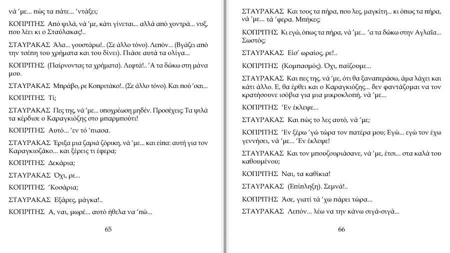 ΣΤΑΥΡΑΚΑΣ Και τον μπουζουριάσανε, νά 'με... έτσι... στα καλά του καθουμένου; ΚΟΠΡΙΤΗΣ Ναι... τα καθίκια!