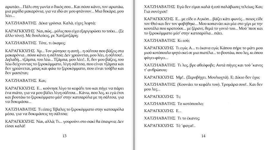 ΚΑΡΑΓΚΙΟΖΗΣ Τι εγώ; Α... τι έκανα εγώ; Κάπου πήρε το μάτι μου μισό κοτόπουλο ψητό εκεί σε μια πιατέλα... το βουτάω, που λες, κι όπου φύγει-φύγει...