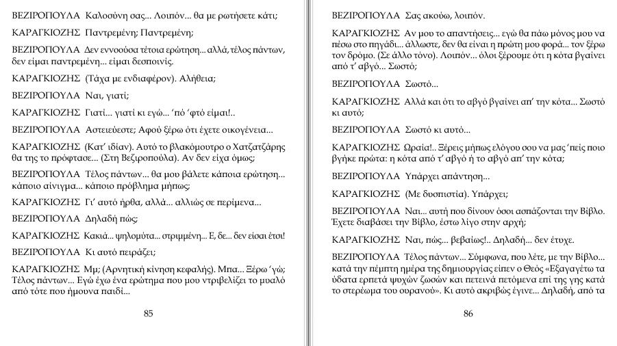 ΒΕΖΙΡΟΠΟΥΛΑ Αστειεύεστε; Αφού ξέρω ότι έχετε οικογένεια... ΚΑΡΑΓΚΙΟΖΗΣ (Κατ' ιδίαν). Αυτό το βλακόμουτρο ο Χατζατζάρης θα της το πρόφτασε...