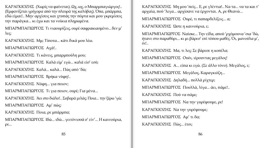 ΚΑΡΑΓΚΙΟΖΗΣ Μα, τι λες; Σε βάρεσε η κοπέλα; ΜΠΑΡΜΠΑΓΙΩΡΓΟΣ Ουόι, ιέρουντας μεγάλος!