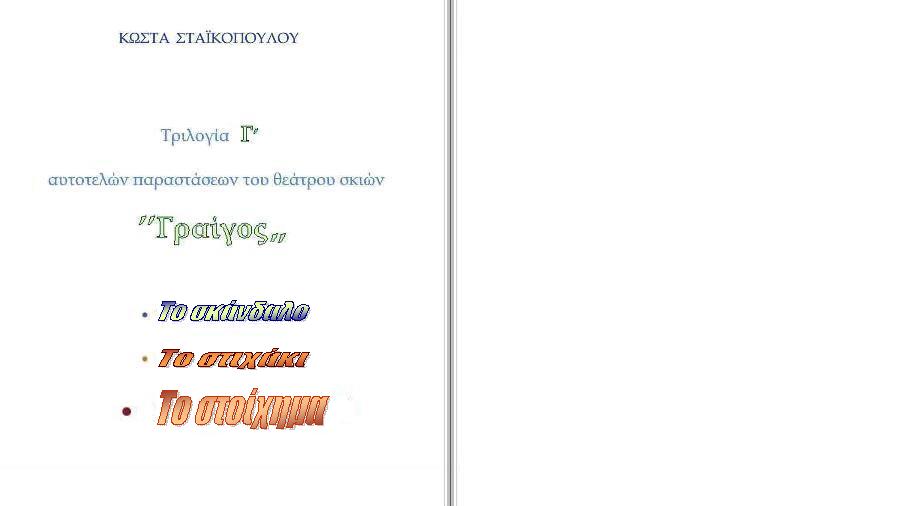 Ε π ι τ ρ έ π ε τ α ι η από σκηνής παρουσίαση του έργου από κάθε ενασχολούμενο με το θέατρο σκιών.