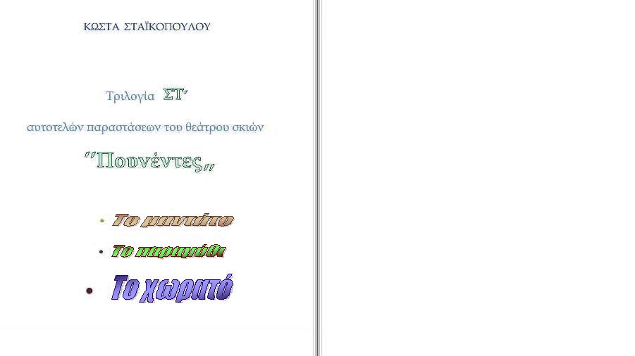 Ε π ι τ ρ έ π ε τ α ι η από σκηνής παρουσίαση του έργου από κάθε ενασχολούμενο με το θέατρο σκιών.
