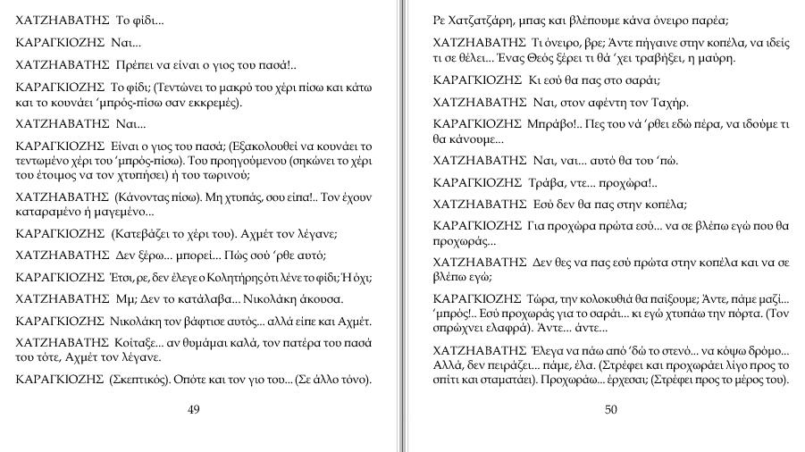 ΧΑΤΖΗΑΒΑΤΗΣ Μη χτυπάς, σου είπα!.. Τον έχουν καταραμένο ή μαγεμένο... ΚΑΡΑΓΚΙΟΖΗΣ Αχμέτ τον λέγανε;