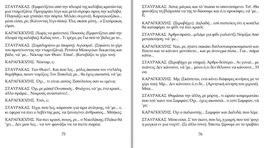 ΣΤΑΥΡΑΚΑΣ Άρθρο δεύτερο... Αι γυναί... με πιάνεις; Δεν κάνουνε, νά 'με... μόνο ό,τι δε θέλουνε να κάνουνε... Ή ου; ΚΑΡΑΓΚΙΟΖΗΣ Μμ;